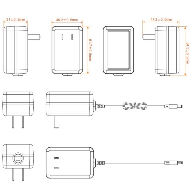 产品名称: 5V3A中规3C认证黑色插墙式1.5米5525插口